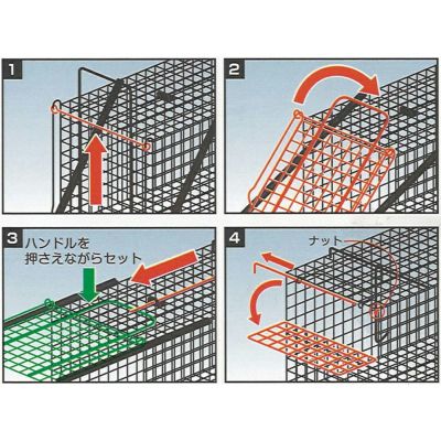 ◆動物を捕獲した後は、必ず捕獲器上部のハンドルを持って運搬などを行ってください。