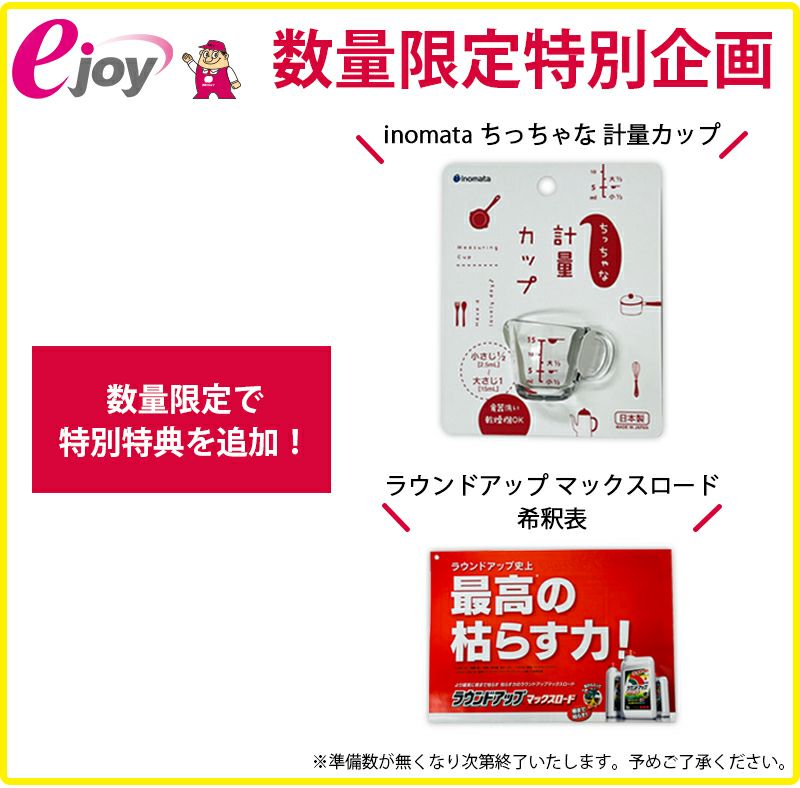 他の画像を見る 【ejoy数量限定特別セット】 日産化学 除草剤 ラウンドアップマックスロード AL 4.5L 4個セット + オリジナルタオル プレゼント + はじめてガイド冊子 プレゼント 送料無料 当店特別価格 ¥ 9,580 税込 詳細を見る お気に入りに登録する