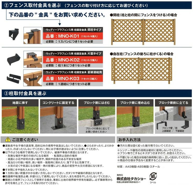 タカショー ラティスフェンス柱固定金具 ブロック前固定用 金具 MNO-K04