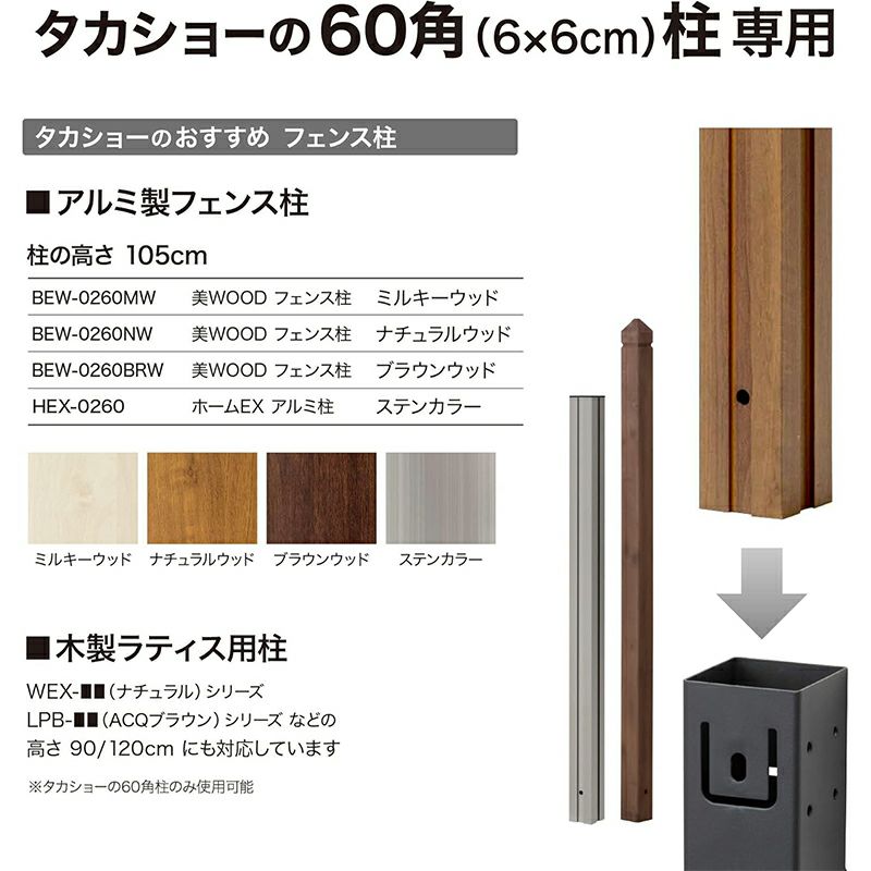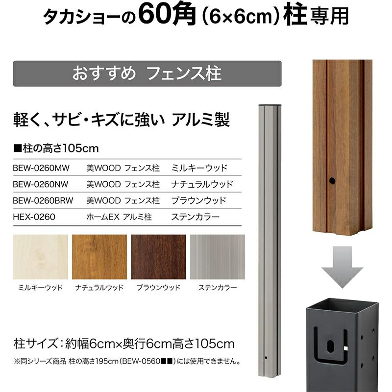 タカショー 美WOOD フェンス柱 60角×1050 ミルキーウッド 木目 BEW-0260MW