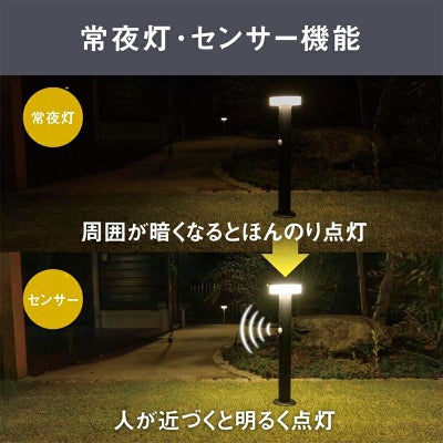 ●周囲が暗くなると自動点灯し、人が近づくとさらに明るく点灯するセンサー機能付き。