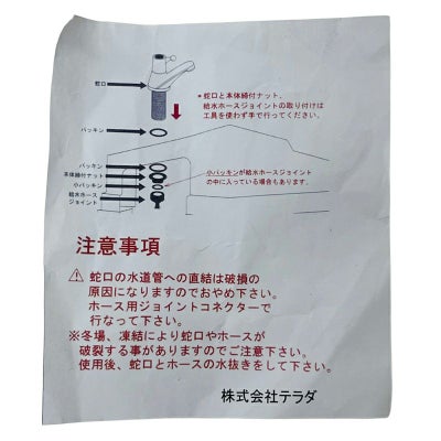 ※冬場、凍結により蛇口やホースが破裂することがありますのでご注意ください。