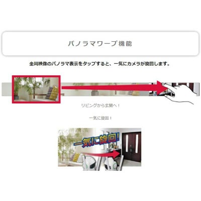 全周映像のパノラマ表示をタップすると、一気にカメラが旋回し、見たい場所に視野が移動します。