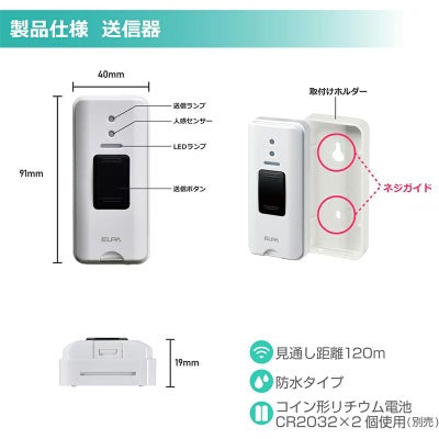 付属品:取付ネジ 2本(Φ3×20mm)、送信場所シール 1枚