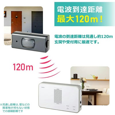 ●電波の到達距離は見通し約120m。一般家庭や店舗・事務所における呼び出しや報知用に最適です。