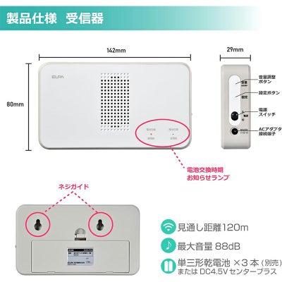 <ELPA 受信器 ワイヤレスチャイム 配線不要 エルパ EWS-P50>