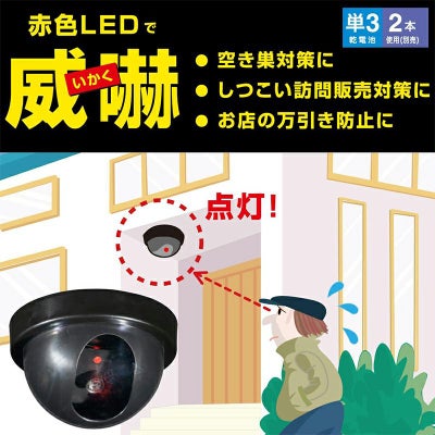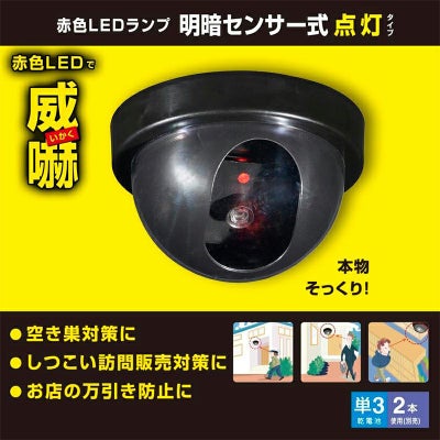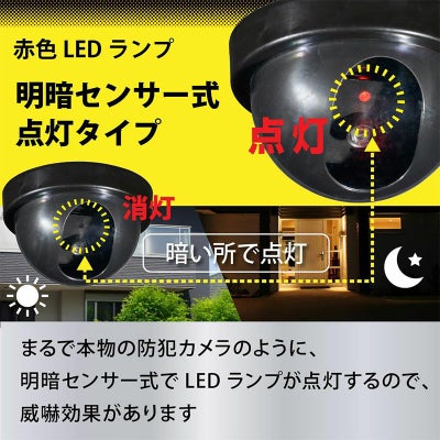 ● まるで本物の防犯カメラのように、明暗センサー式でLEDランプが点灯するので、威嚇効果があります