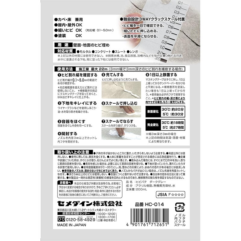 セメダイン ヒビパテ ダークグレー 200ml 水性パテ コンクリート・モルタル用 屋内外対応 HC-014