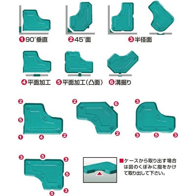 ●使用方法例:90度垂直・45度面・半径面・平面加工・平面加工(凸面)・溝堀り等。