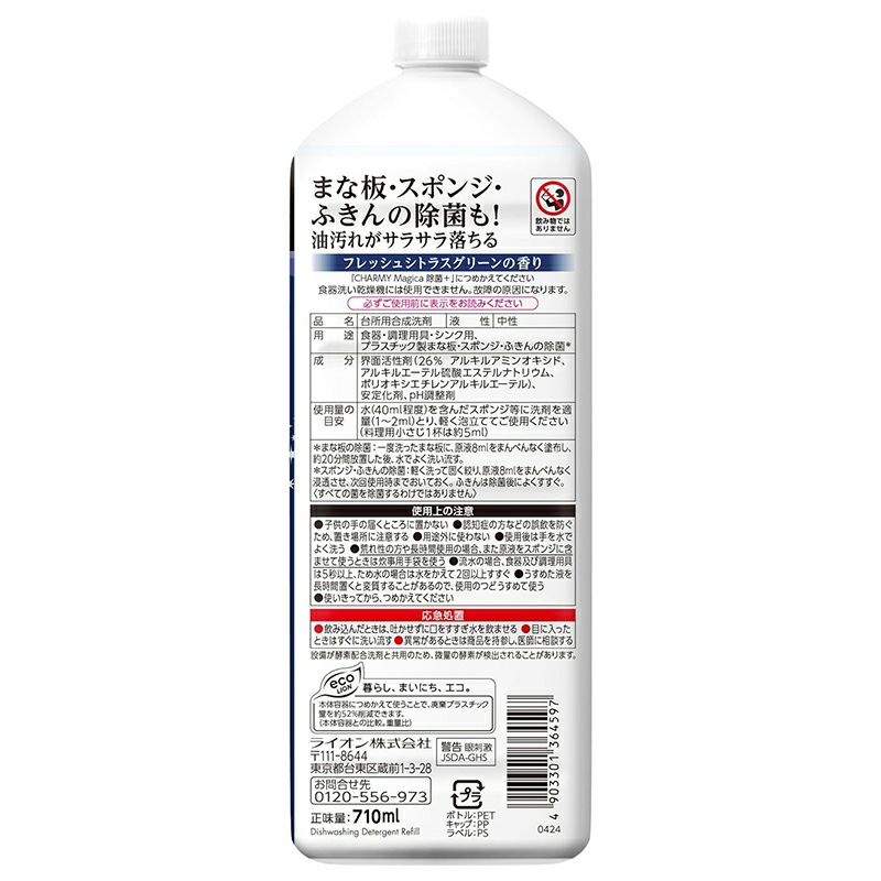 他の画像を見る ライオン CHARMY Magica 除菌+ フレッシュシトラスグリーンの香り つめかえ用 特大 710ml 食器用洗剤 当店特別価格 ¥ 448 税込 カートに入れる お気に入りに登録する