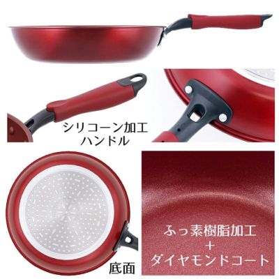 ・内面はふっ素樹脂加工+ダイヤモンドコートを施し、傷に強く、こびりつきにくい