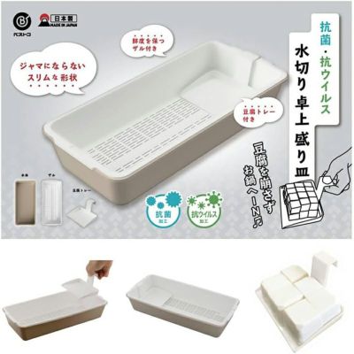 ベストコ 抗菌・抗ウイルス 豆腐トレー付 水切り卓上盛り皿スリム ワームグレー MA-3230