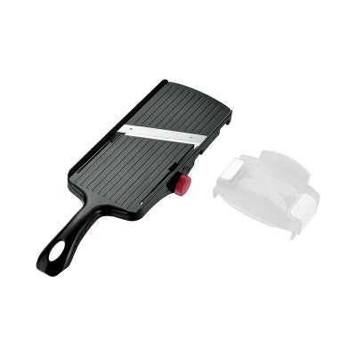 指先をガードするホルダー付き。食材が小さくなってもしっかり押さえられ、最後まで無駄なくスライスできます。