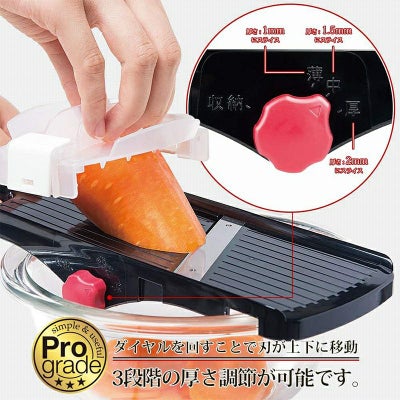 1.0mm、1.5mm、2.0mmの厚みに調整できるスライス刃。