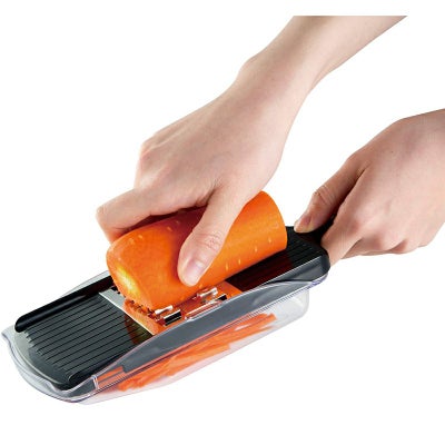 容器を斜めにすることで軽い力で太千切りができます。