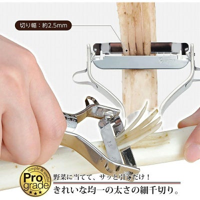 クシ刃に刃付けをしているので軽い力で細千切りができます。