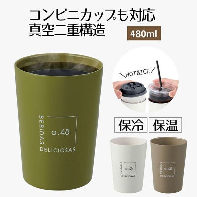 ベストコ タンブラー 480ml シアーアイボリー コンビニカップ対応 ホット アイス 保温 保冷 NM-187