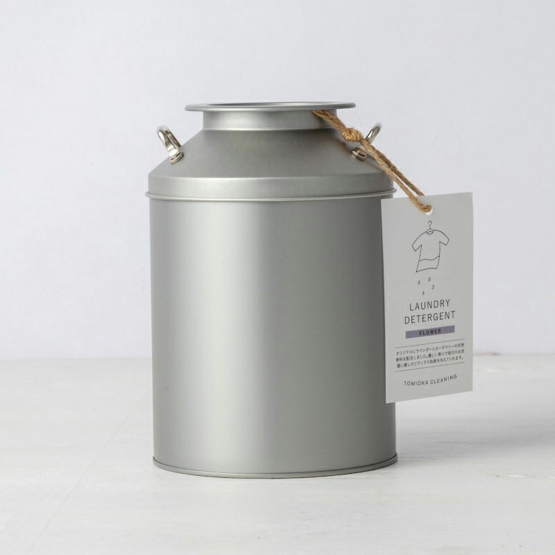 とみおかクリーニング オリジナル 粉末洗濯洗剤 ミルク缶入り 800g ステンレス計量スコップ付