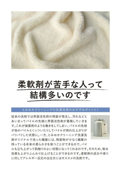 また、柔軟剤を使用しなくてもふんわり柔らかく仕上がりますので、柔軟剤による肌荒れにお悩みの方にもおすすめです。