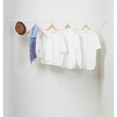 ※撮影小物は商品には含まれません。つっぱり押入れ伸縮棒とそれをささえる強力ポールのセット。
