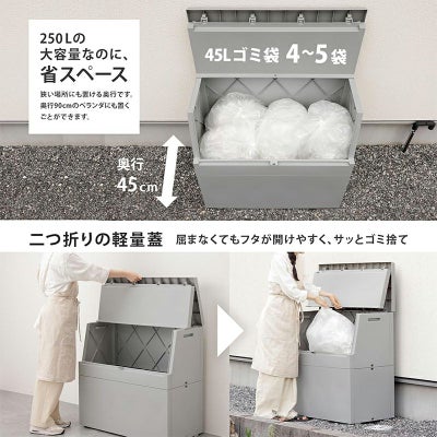 <リス 屋外ストッカー サスティメイド 250L 日本製 屋外ボックス ゴミ箱 GGYC822>