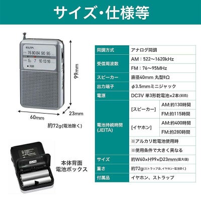 【ELPA AM/FM電池長持ちラジオ ER-P80F】