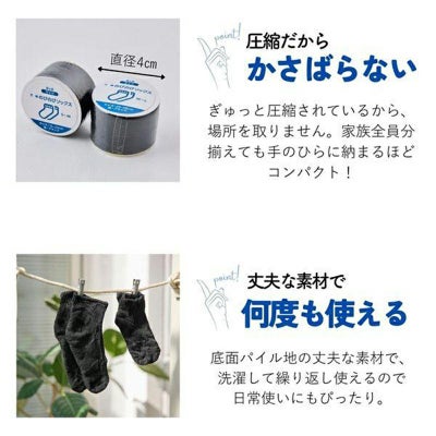●旅行に、日常に、防災に! コンパクトに持ち運べて必要な時さっと使える 便利な圧縮靴下