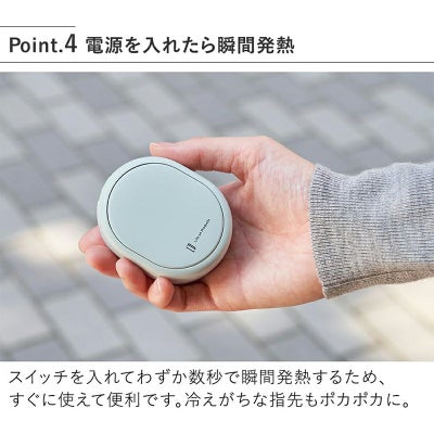 スイッチを入れてわずか数秒で瞬間発熱するため、すぐに使えて便利です。冷えがちな指先もポカポカに。