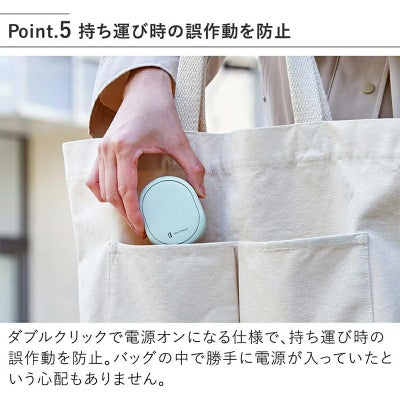ダブルクリックで電源オンになる仕様で、持ち運び時の誤作動を防止。バッグの中で勝手に電源が入っていたという心配もありません。