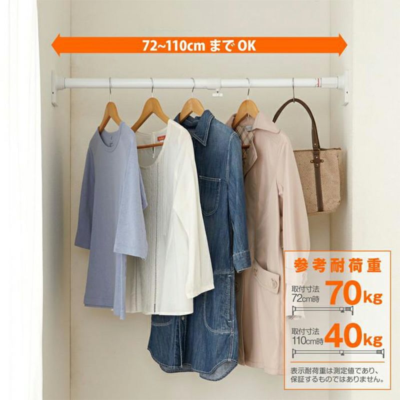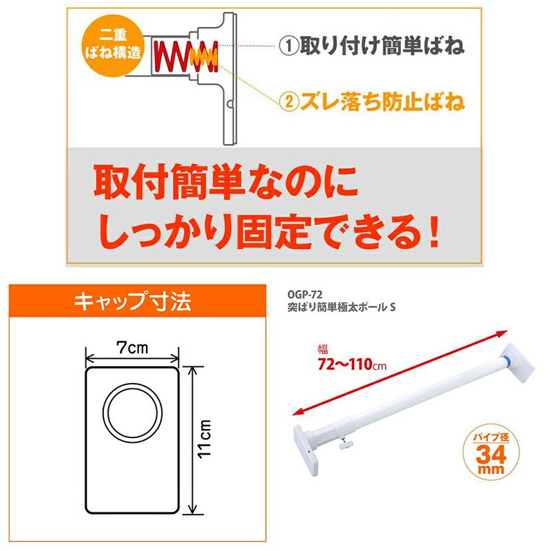 平安伸銅 突ぱり簡単極太ポール S OGP-72 白 つっぱり棒 72~110cm