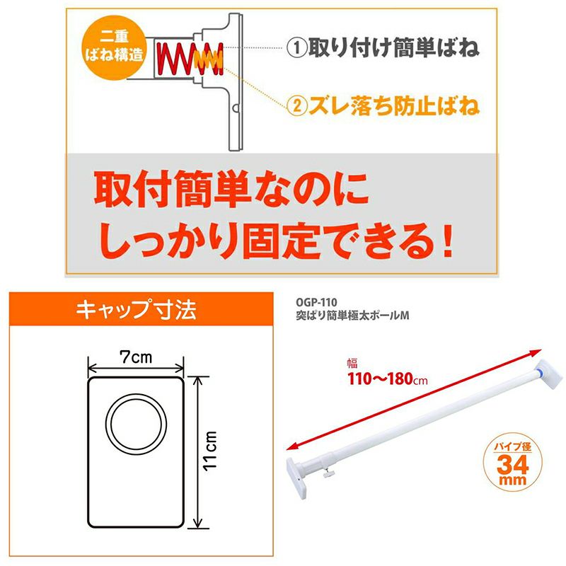 平安伸銅 突ぱり簡単極太ポール M OGP-110 白 つっぱり棒 110~180cm