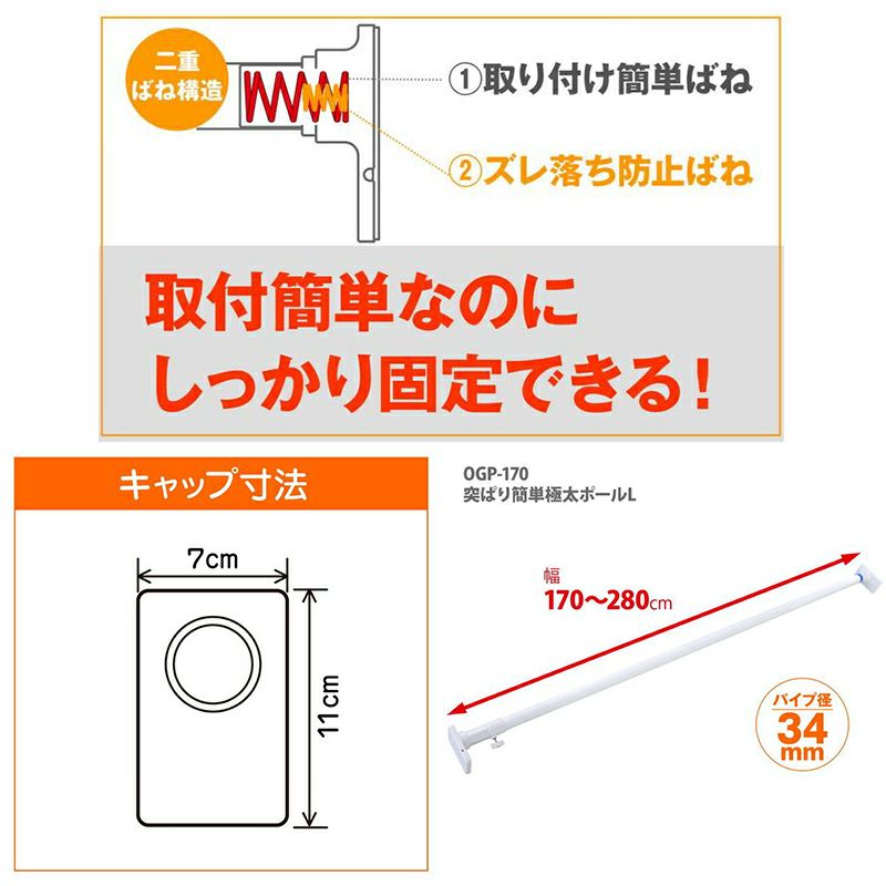 平安伸銅 突ぱり簡単極太ポール L OGP-170 白 つっぱり棒 170~280cm