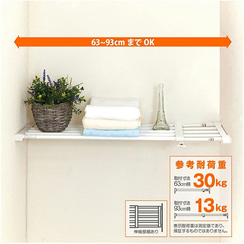 平安伸銅 突ぱり強力伸縮棚 小 ホワイト KB-63 つっぱり棚 63~93cm 倉庫No0001