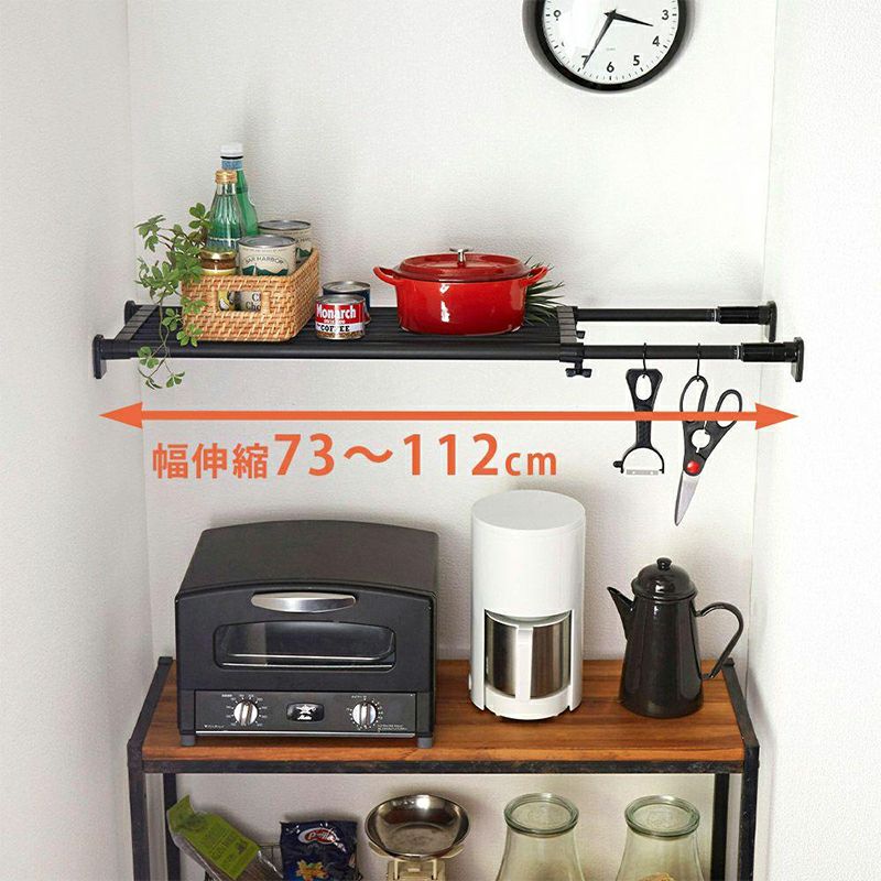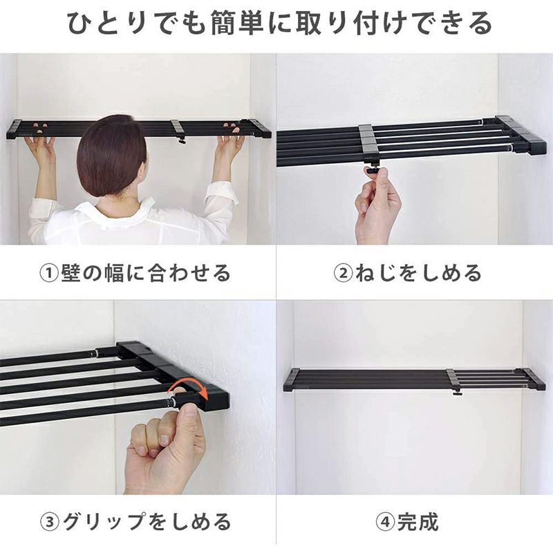 平安伸銅 突ぱり強力伸縮棚 小 マットブラック KB-63B つっぱり棚 63~93cm