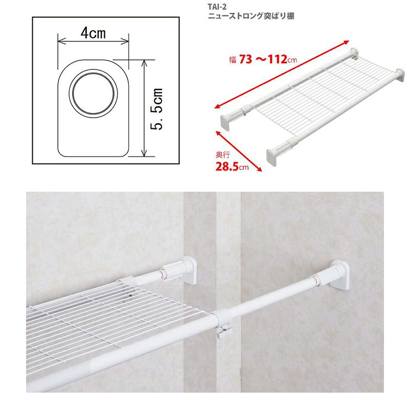 平安伸銅 ニューストロング突ぱり棚 小 TAI-2 メッシュ 白 強力 つっぱり棚 73~112cm