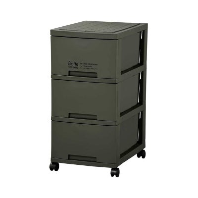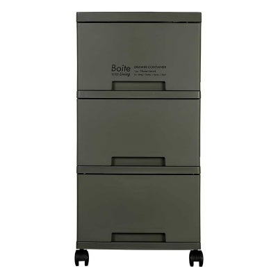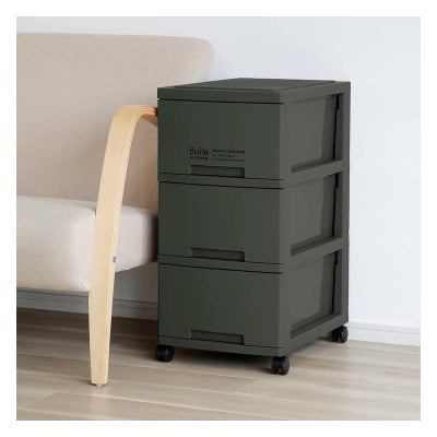 ベストコ チェスト Boiteリビング 3段収納 スリム カーキ MA-4037