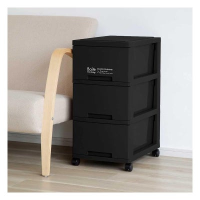 ベストコ チェスト Boiteリビング 3段収納 スリム ブラック MA-4038