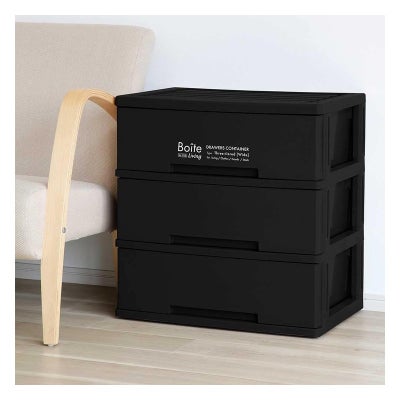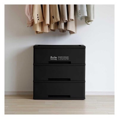 ベストコ チェスト Boiteリビング 3段収納 ワイド ブラック MA-4044