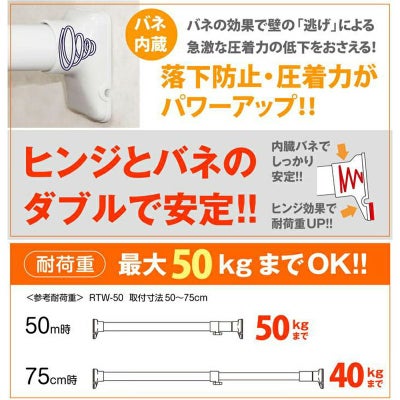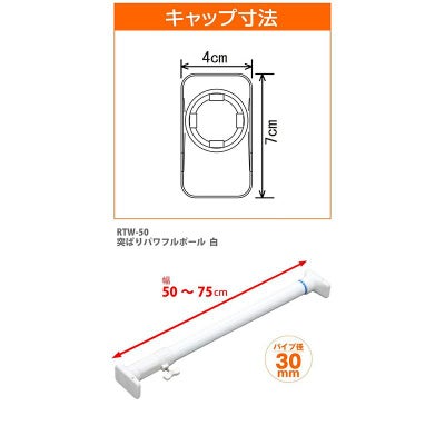 平安伸銅 突ぱりパワフルポール 白 特小 RTW-50 つっぱり棒 強力タイプ 50~75cm