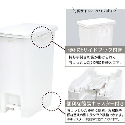 ・ちょっとした分別にも使える、持ち手付きの袋が掛けられるサイドフック付き