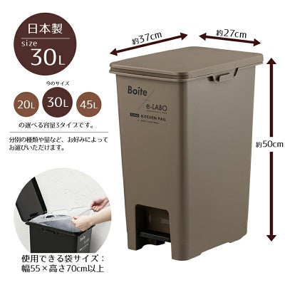 ベストコ Boite×e-LABO ペダルペール 30L カーキ ゴミ箱 フタ付ELB-PP30-KH