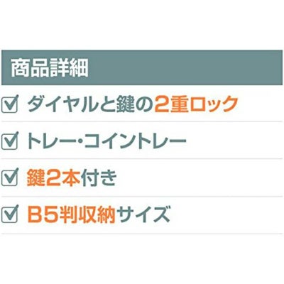 日本アイ・エス・ケイ 手提金庫 ダークグレー B5判収納サイズ 2重ロック コイントレー取外し可 鍵2本付属 金庫 保管庫 H-31D