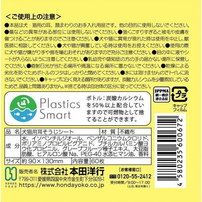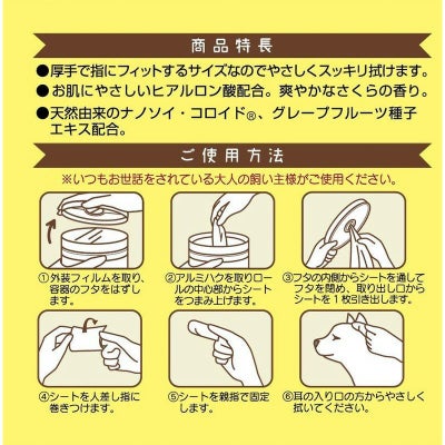 <本田洋行 なでなで 耳そうじシート 60枚入 さくらの香り 犬猫用 大容量 厚手 お手入れ>