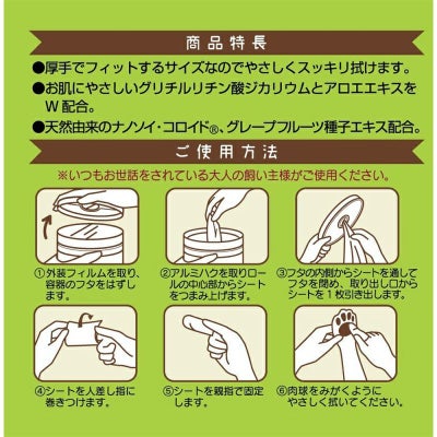 <本田洋行 なでなで 肉球ケアシート 60枚入 フレッシュグリーンの香り 犬猫用 大容量 お手入れ>