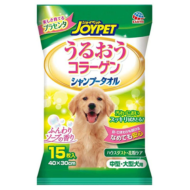●拭くだけで、汚れスッキリ!2つのコラーゲンで皮ふ・被毛がしっとりうるおい、輝く。