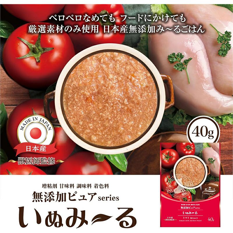 他の画像を見る リバードリパブリック いぬみーる 無添加ピュア PureValue5 トマト 鶏むね入り 40g メール便対応(8個まで) メール便 当店特別価格 ¥ 148 税込 在庫切れ 詳細を見る お気に入りに登録する
