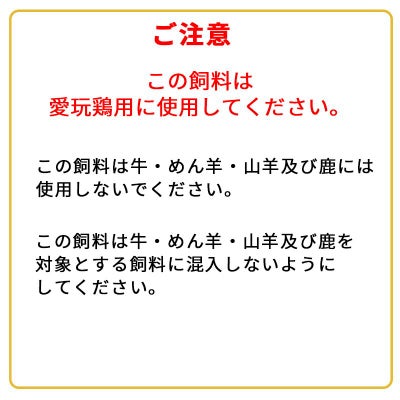 ※この飼料は牛・めん羊・山羊及び鹿には使用しないでください。