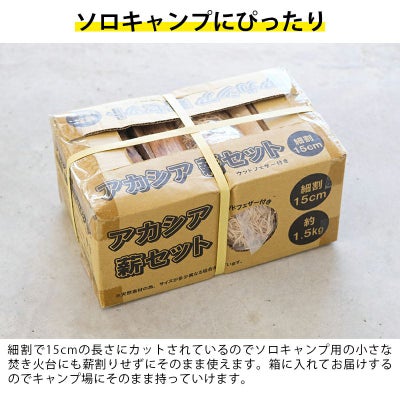 アカシア 薪セット 約1.5kg 細割15cm ウッドフェザー付き