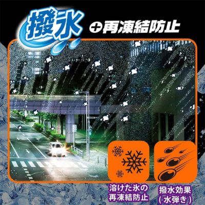 撥水性シリコーンがガラスに密着する事で、水をしっかり弾いて溶けた氷の再凍結を防止。