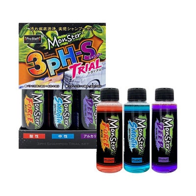 モンスターブランドから革新的ケミカルの新提案。アルカリ性、 酸性、中性、3タイプのシャンプーをセットにした高濃度のpH(ペーハー)シャンプーが誕生しました。